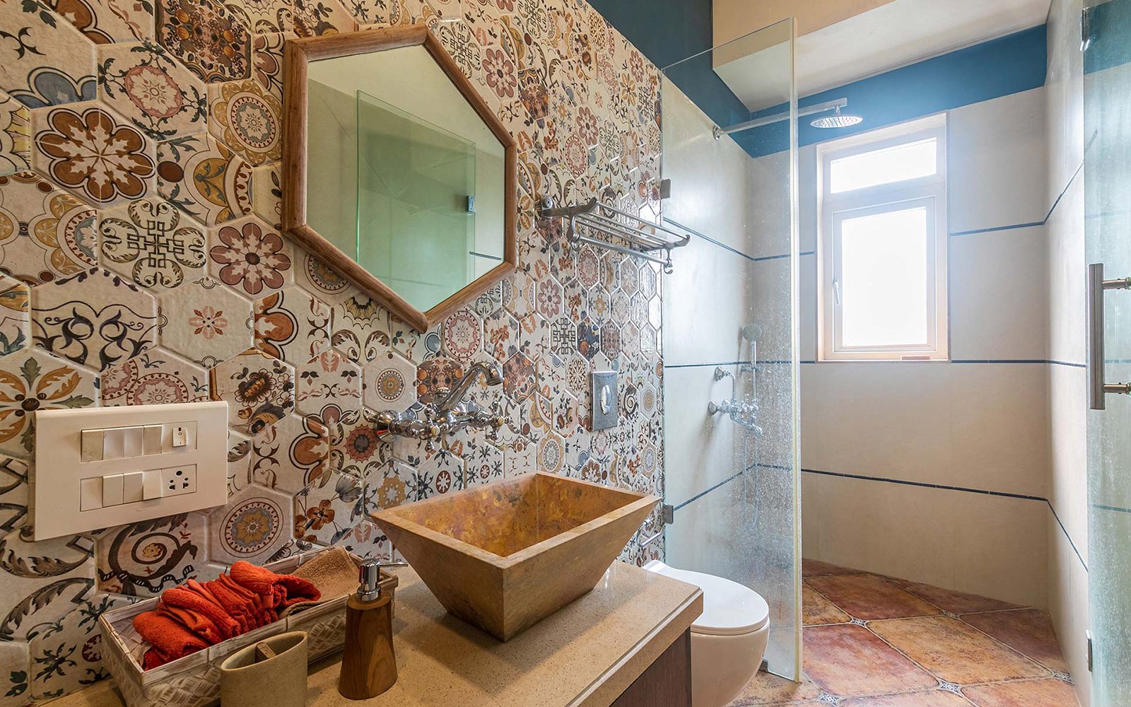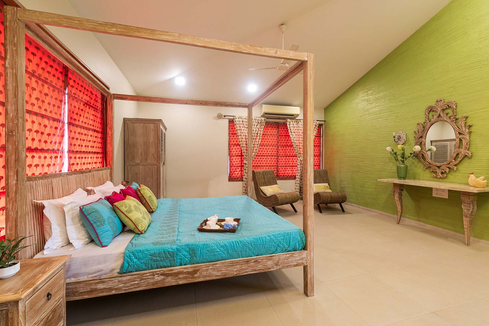 All attached bathrooms feature geysers, towels, essential toiletries, and separate dressing areas.