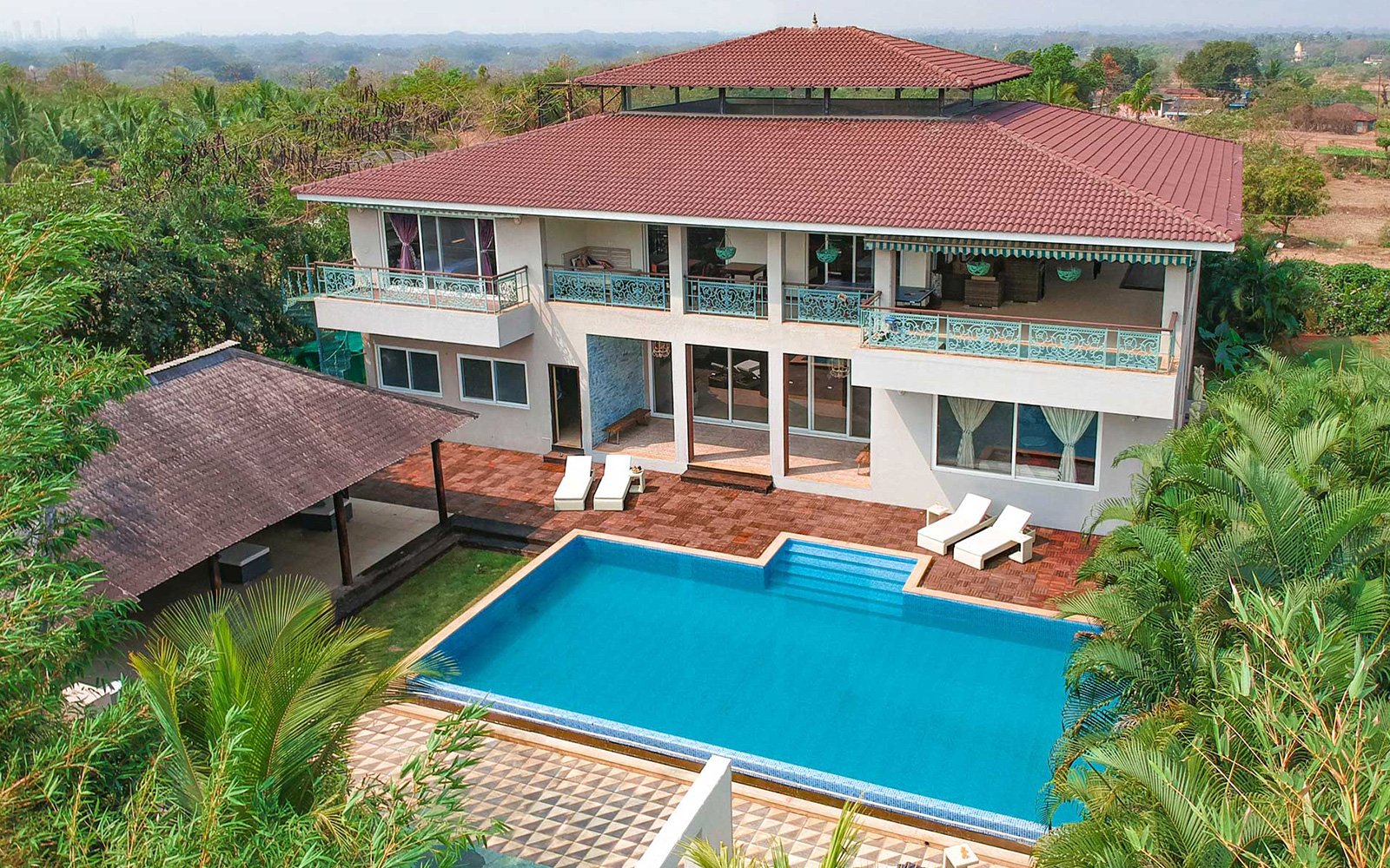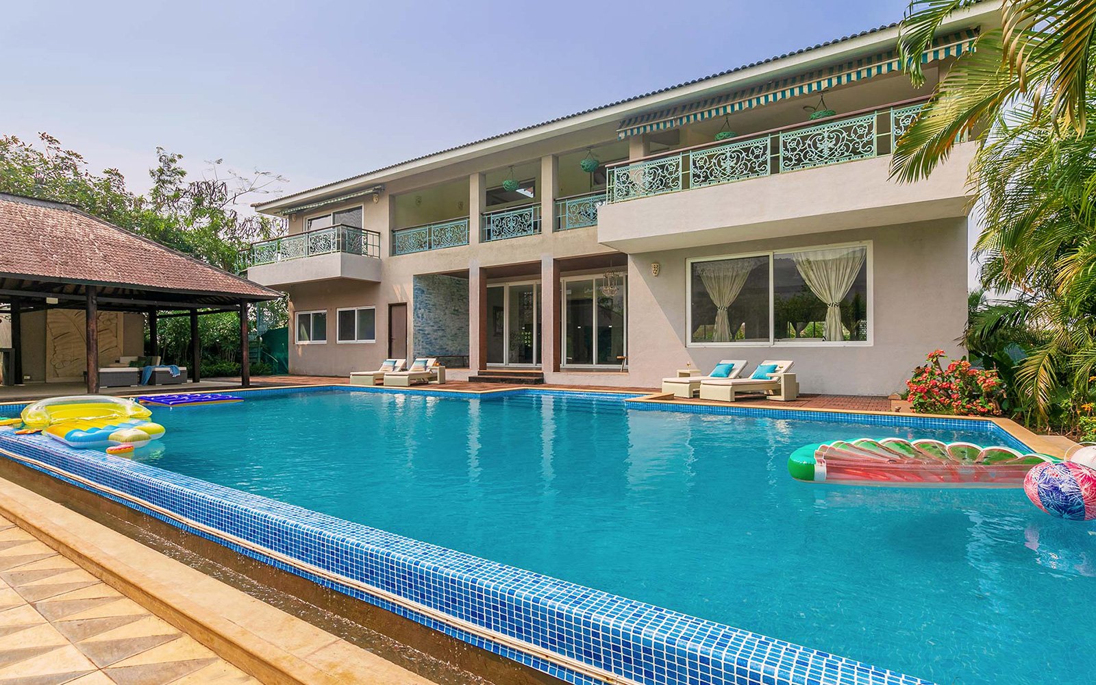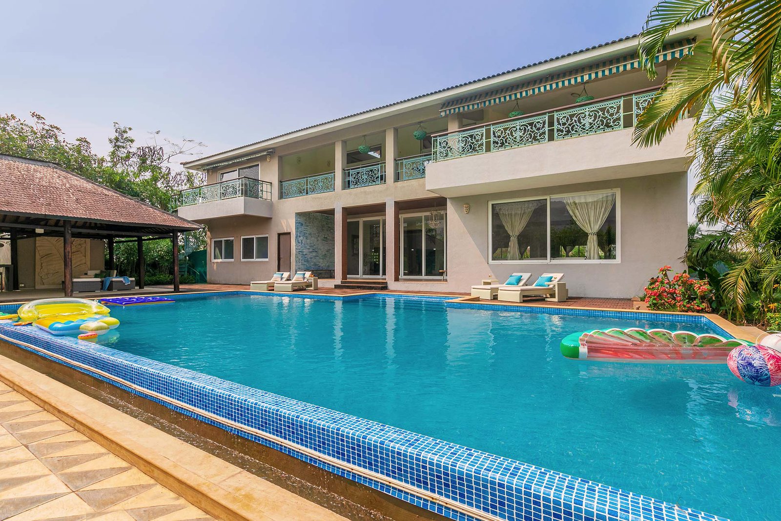 Dive into luxury in the expansive private swimming pool, accompanied by an attached gazebo, bar and washrooms.